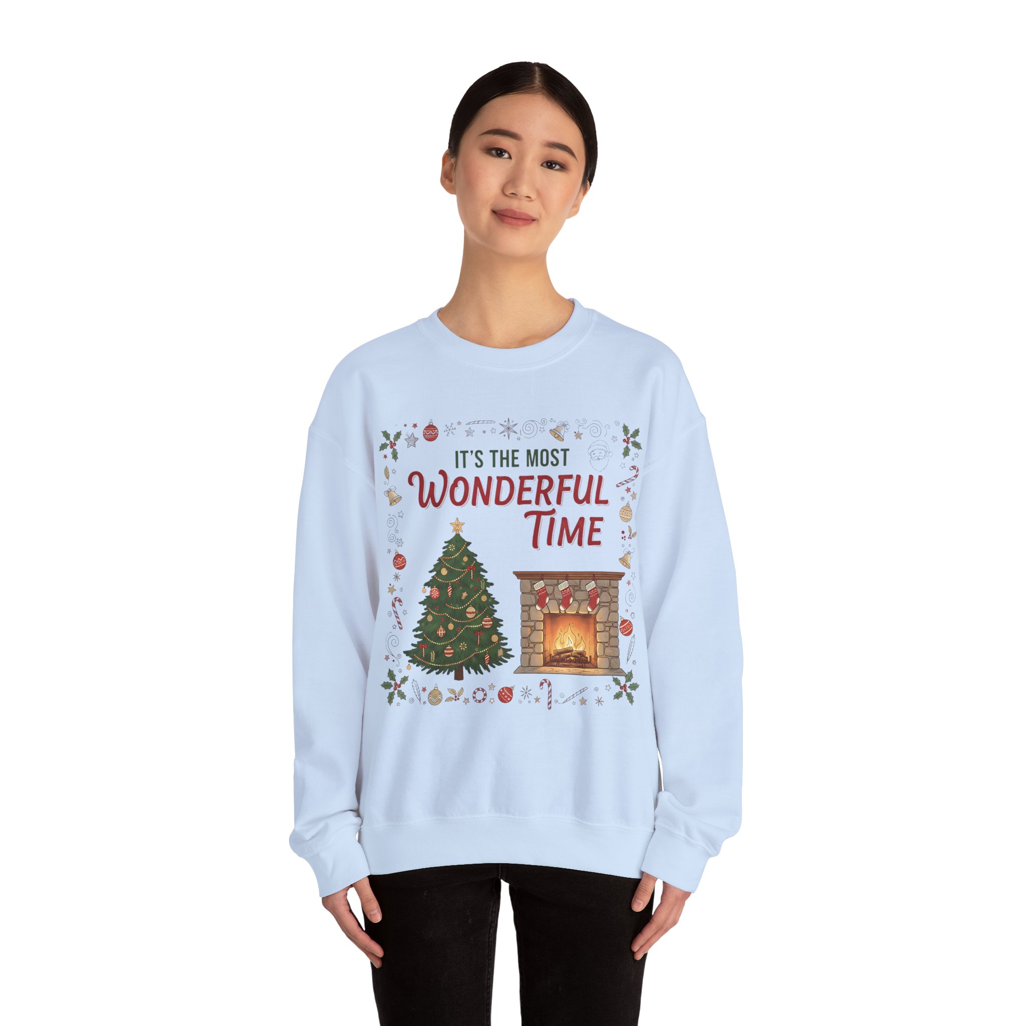 Step into the magic of the season with this It’s The Most Wonderful Time Christmas sweatshirt. Designed on a premium Gildan 18000, this cozy holiday crewneck blends comfort and charm with a festive Christmas tree, fireplace glow and winter accents.